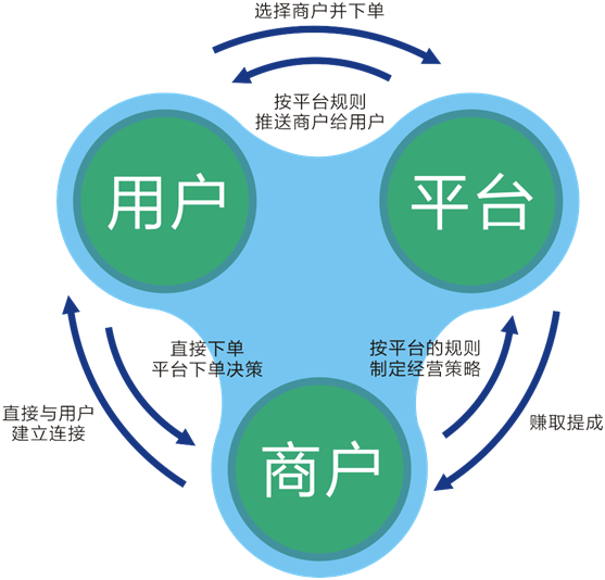 如圖中表述平臺是一個信息中介商,起到的最大的作用就是一邊連接用戶一邊連接商戶,然后通過算法篩選出來較優(yōu)匹配進(jìn)行推薦,用戶的整個決策過程是從從用戶到平臺到商戶。那么只要我們能夠影響到用戶的信息接收與判斷,我們就能在平臺固有的規(guī)則之外建立一套屬于自己的流量經(jīng)營方法,使得用戶的整個決策過程變?yōu)榱藦挠脩舻缴虘?。我喜歡稱這個過程為“與用戶建立情感的連接”,你想想如果同樣價格差不多味道差不多的門店在你面前,你是不是更加愿意選擇你更熟悉的店鋪呢。