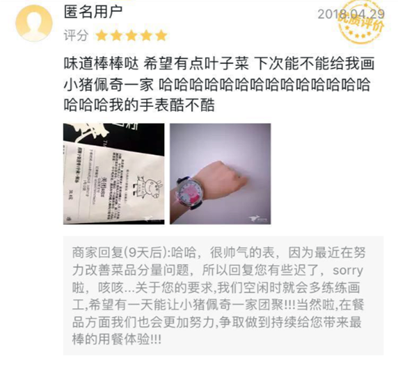 我們利用自己研發(fā)的IT支撐系統(tǒng)實(shí)現(xiàn)了小票的兩種品牌營銷方法,一個是熱點(diǎn)營銷一個是口令營銷。在前些時間突然流行起來畫小豬佩奇,以此來跟用戶進(jìn)行互動,但是一個品牌幾十個門店,一個門店大幾百單,畫小豬佩奇是個非常龐大的工程。但我們利用小票打印圖片的功能,預(yù)先手繪小豬佩奇,然后設(shè)置每個訂單默認(rèn)在小票頭打印,以此將畫小豬佩奇的事情交給系統(tǒng)自動實(shí)現(xiàn),大大降低了人工,提高了效率。同時我們還會利用自定義小票功能在小票上播報(bào)營銷廣告,例如我們在小票上打印一句話“即日起至多少號止,在本店下單并備注綠豆沙即送價值冰涼綠豆沙一份”,如果用戶備注了綠豆沙三個字,系統(tǒng)會自動抓取并直接在菜品欄中寫明“備注口令贈送綠豆沙一瓶”,這樣門店也不需要去看備注需要送啥,時間有沒有截止,只用看菜品欄目有沒有贈送信息就好。