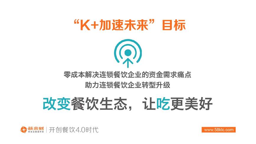 “K+ 加速未來”連鎖餐飲企業(yè)金融助推計劃旨在以零成本解決連鎖餐飲企業(yè)的資金需求痛點,助力連鎖餐飲企業(yè)轉型升級,提升競爭能力。該計劃的核心內容包括如下三點: