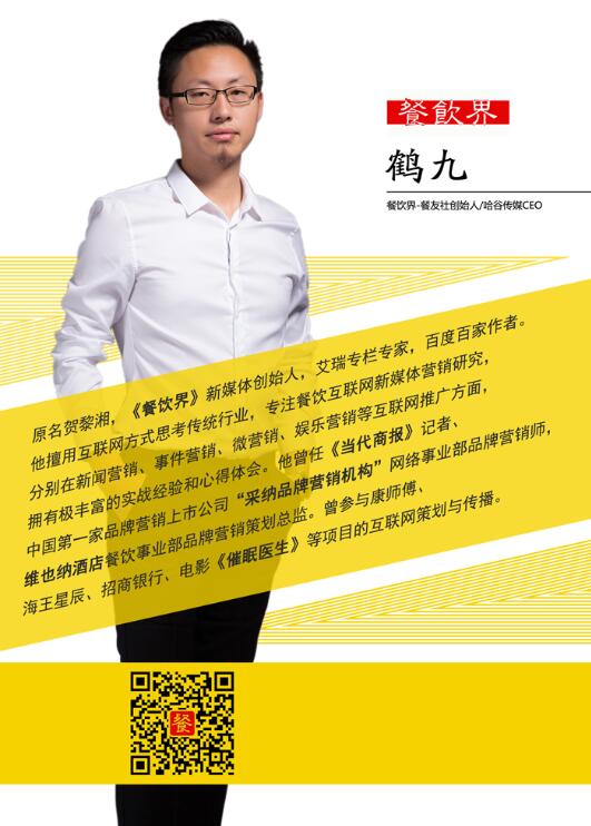 鶴九告訴記者,他多次在與一些餐飲老板溝通關于餐飲互聯(lián)網(wǎng)思維時,發(fā)現(xiàn)他們大都缺乏系統(tǒng)的互聯(lián)網(wǎng)思維體系,對互聯(lián)網(wǎng)工具以及營銷打法知之甚少,而市面上又特別缺乏一本系統(tǒng)闡述“餐飲互聯(lián)網(wǎng)思維和案例”的書籍。對此,他才萌生撰寫此書的念頭,將自己親身實戰(zhàn)的經(jīng)驗與知識進行系統(tǒng)的梳理,并對多年研究的餐飲互聯(lián)網(wǎng)思維精華進行了提煉,希望通過系統(tǒng)的理論體系、案例、方法論,呈現(xiàn)給餐飲創(chuàng)業(yè)者一個全面的餐飲互聯(lián)網(wǎng)思維系統(tǒng)。
