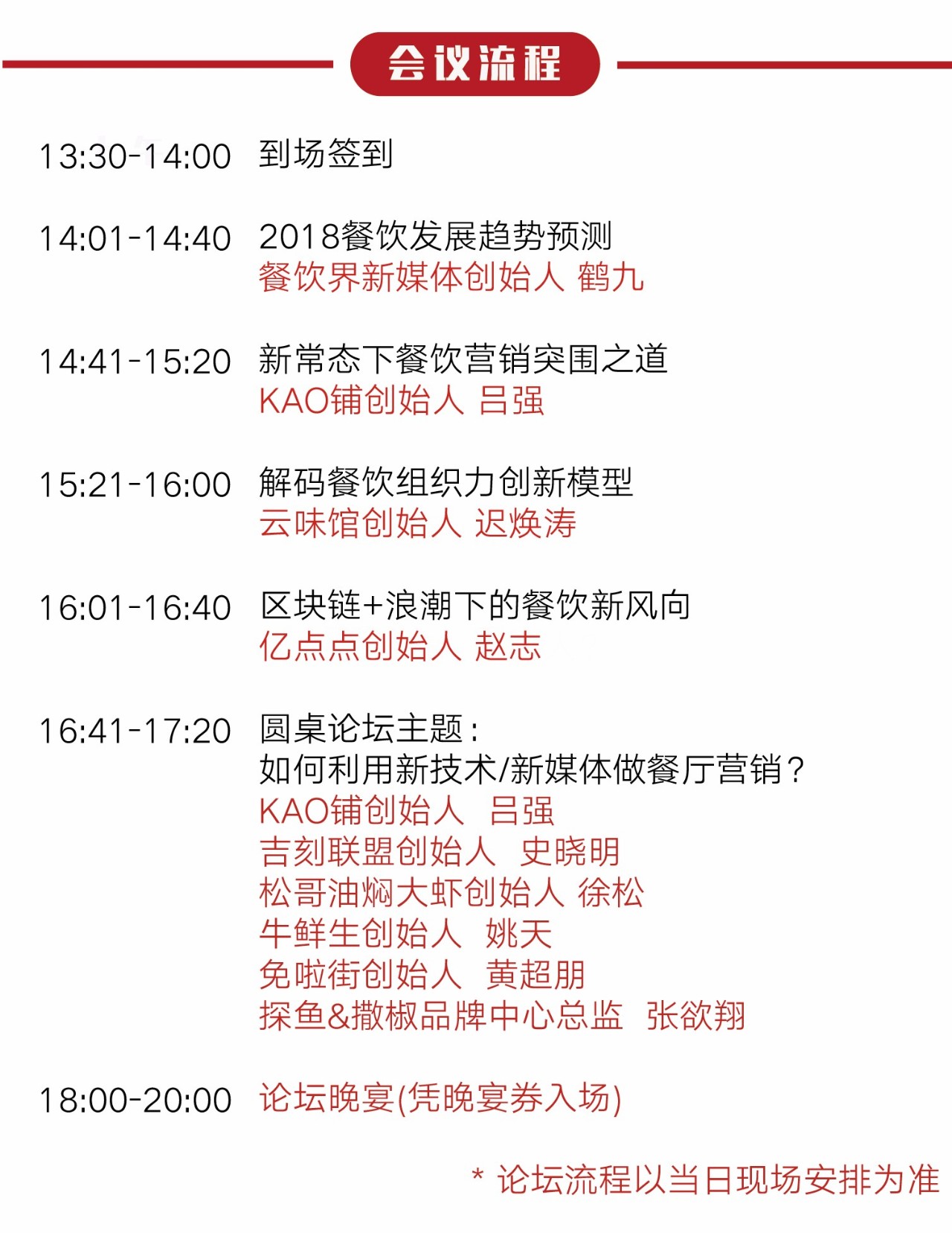 1月18日,餐飲界新媒體將攜手億點點圍繞創(chuàng)新舉行第五屆“創(chuàng)新餐飲風暴會”,并特邀請了行業(yè)較具影響力的創(chuàng)新品牌、優(yōu)秀創(chuàng)業(yè)者進行“創(chuàng)新”主題的分享和思想碰撞,論壇將首次分享《2017餐飲行業(yè)典型創(chuàng)新案例》、《2018餐飲行業(yè)發(fā)展趨勢預(yù)測》、并發(fā)布餐飲行業(yè)重磅級“營銷創(chuàng)新”工具,打造一場創(chuàng)新十足的餐飲盛宴!