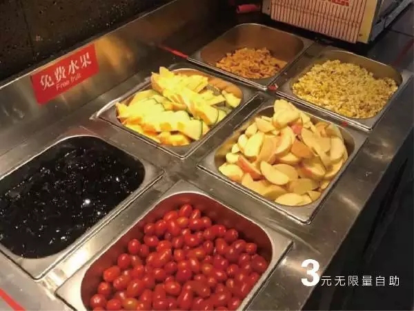 除醉排骨外,醉得意還提供了超值服務(wù):“3元無限自助”。只需花3元,即可享受米飯、水果、茶水等產(chǎn)品無限量自助。